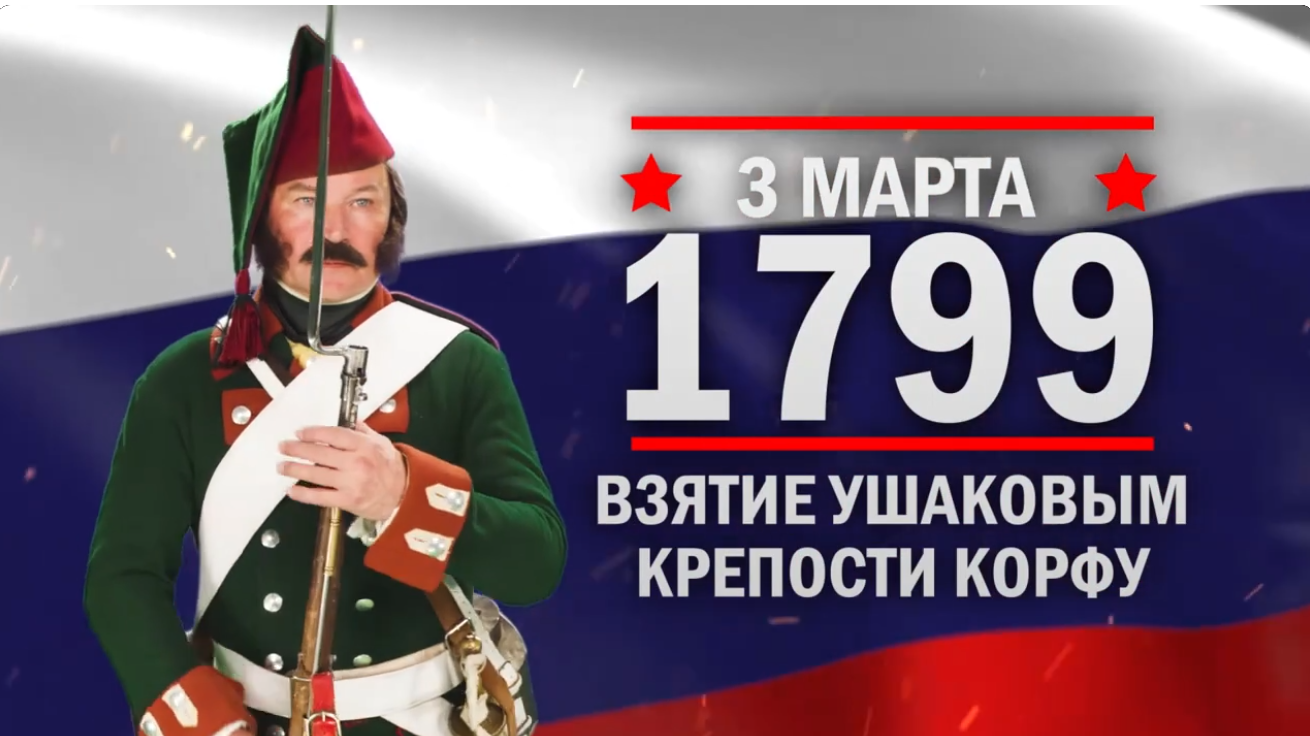 К 20 февраля (3 марта)— Памятная дата военной истории России. В этот день в 1799 году русская эскадра под командованием Фёдора Фёдоровича Ушакова взяла штурмом крепость Корфу. Материалы по ссылке: https://yandex.ru/video/preview/4530248990468886217