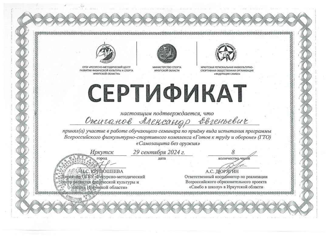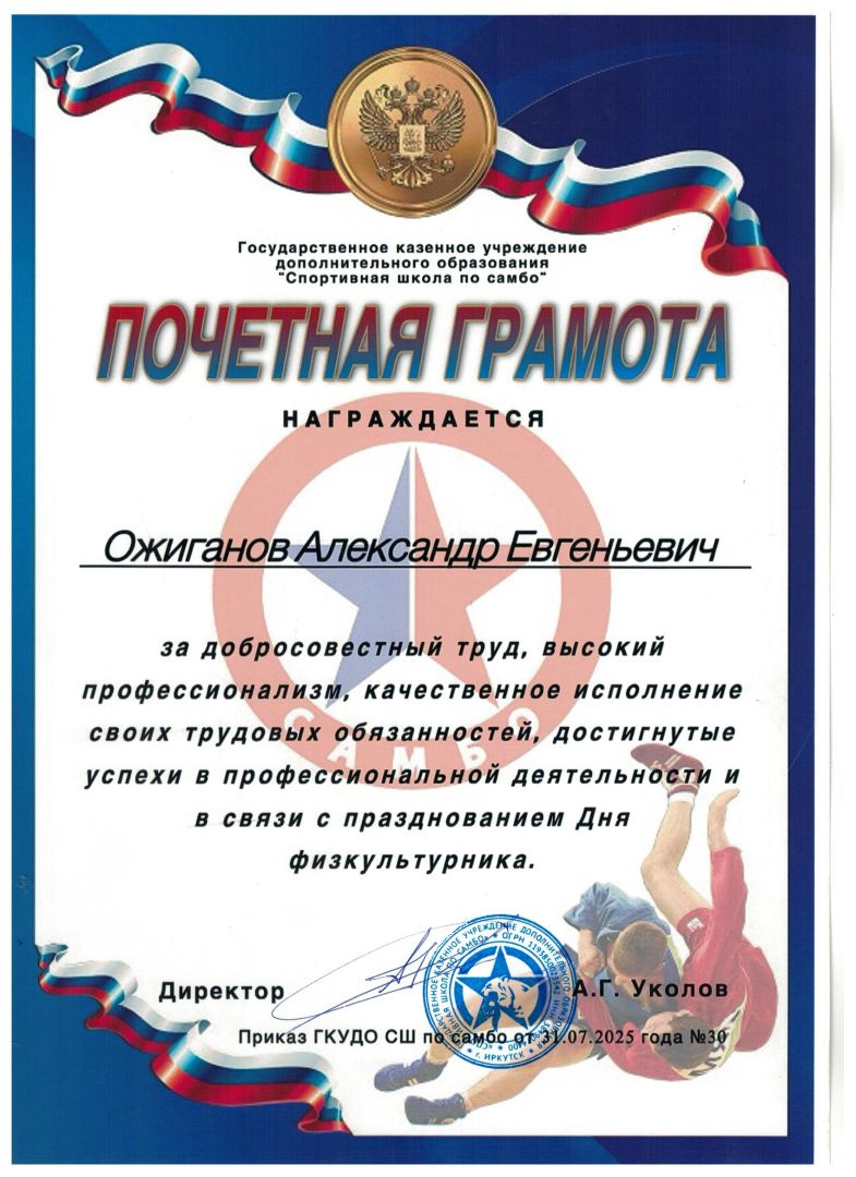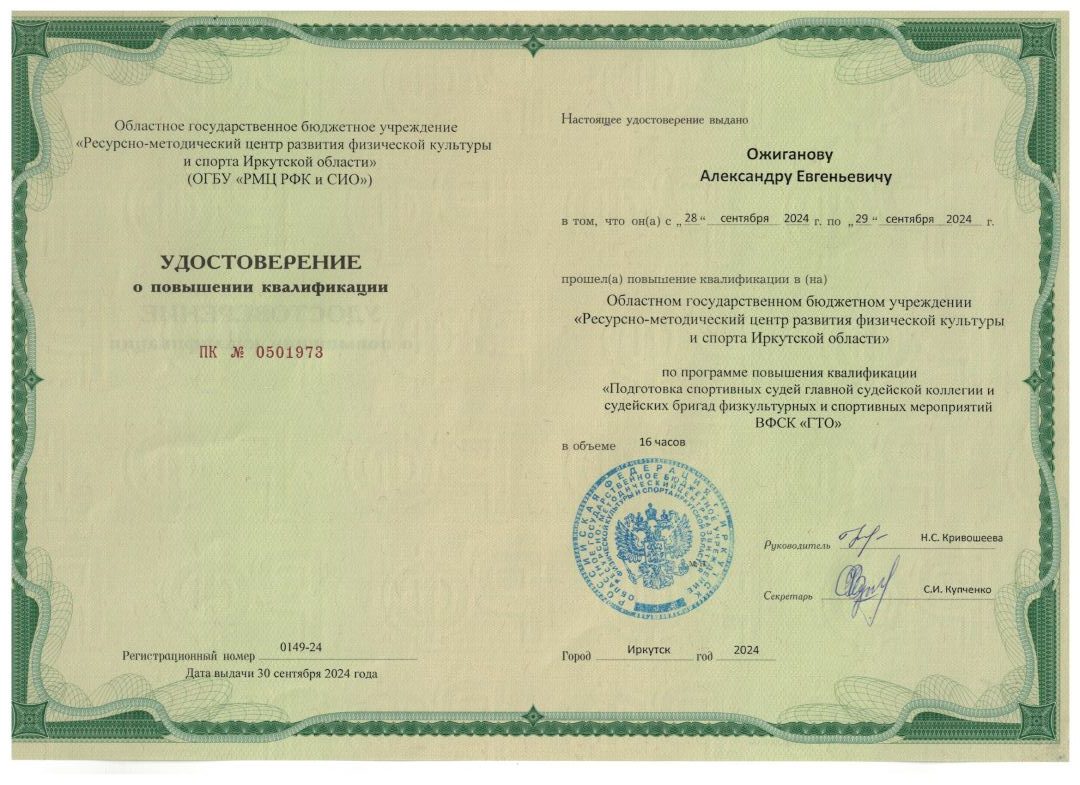 Уровень (уровни) профессионального образования с указанием наименования направления подготовки и (или) специальности, в том числе научной, и квалификации: Среднее професиональная, спортивная подготовка по виду спорта «самбо»